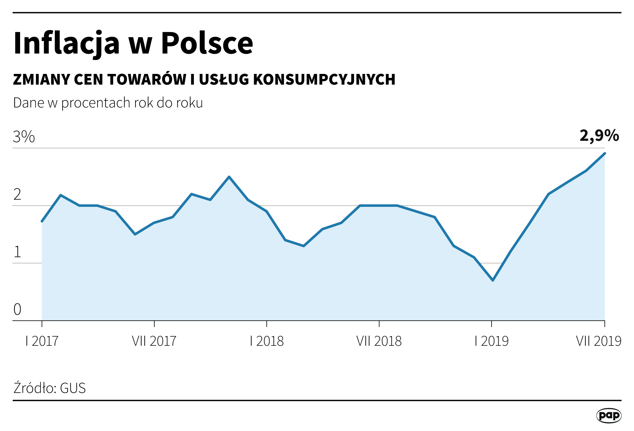 Inflacja w Polsce w lipcu 2019 roku wzrosła do 2,9 proc.