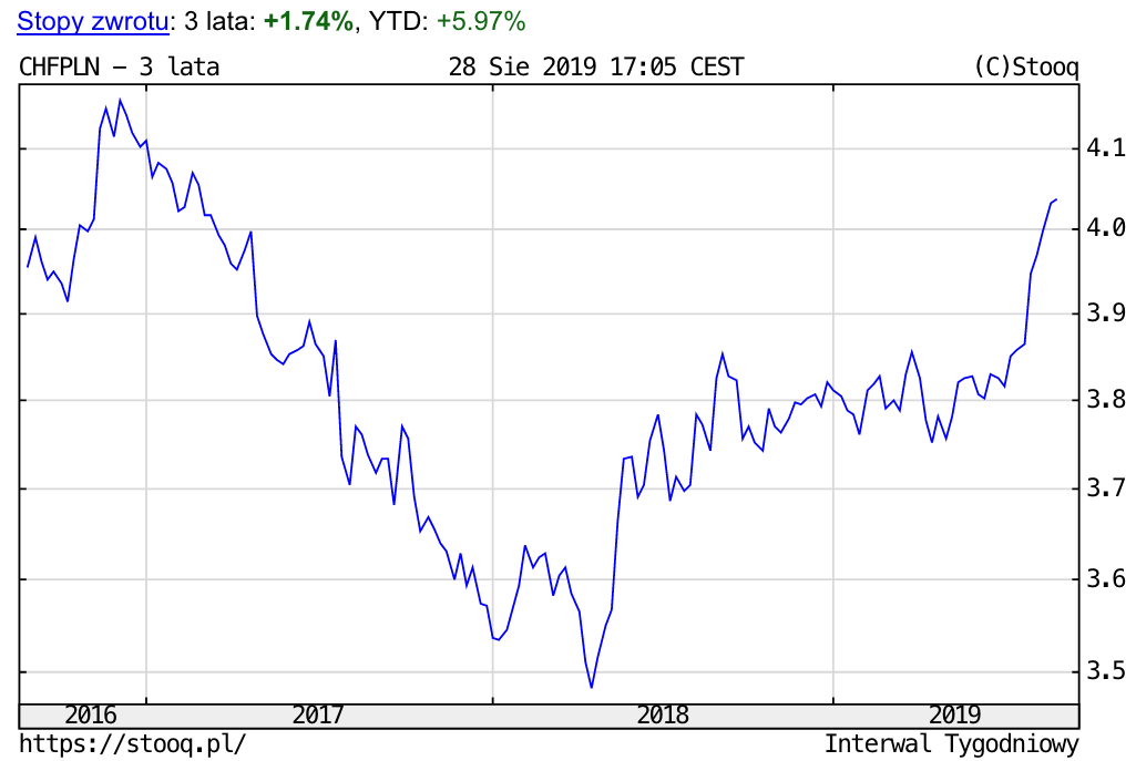 Powodów do zadowolenia nie mają również frankowicze. Za szwajcarską walutę około godziny 17 trzeba było bowiem zapłacić 4,03 złotego, co oznacza wzrost o 0,45 procent w stosunku do wtorkowego zamknięcia.