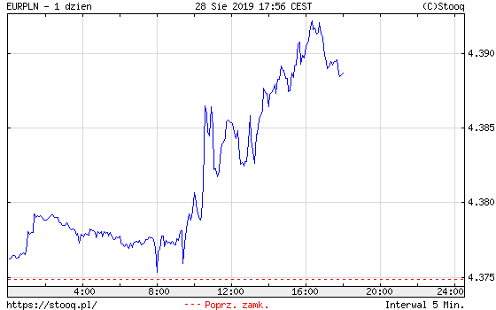 W środę około godziny 17 za jedno euro trzeba było zapłacić 4,39 złotego, co oznaczało wzrost o 0,35 procent. To poziom najwyższy od roku, nie licząc krótkiego wzrostu z 15 sierpnia, kiedy w Polsce było święto.